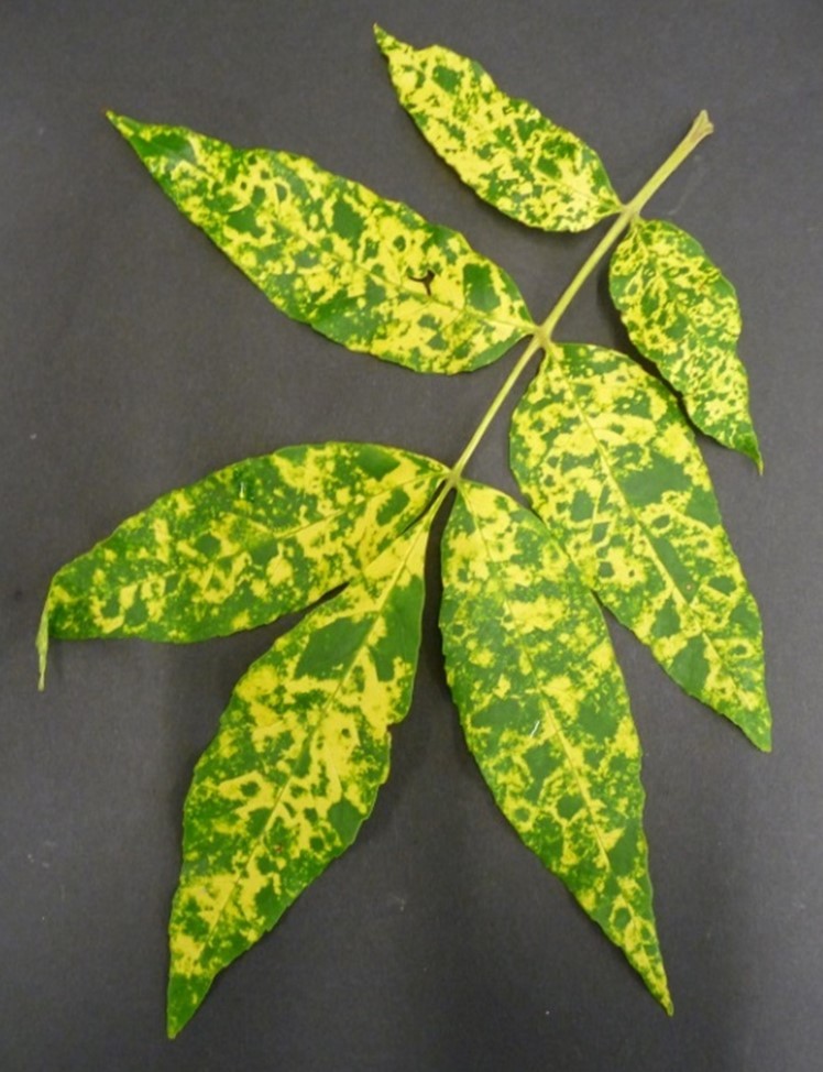 Privet leaf blotch-associated virus (PrLBaV) was first described in association with yellow blotching of privet (Ligustrum japonicum) in Italy, and it has also been mentioned to affect Fraxinus excelsior