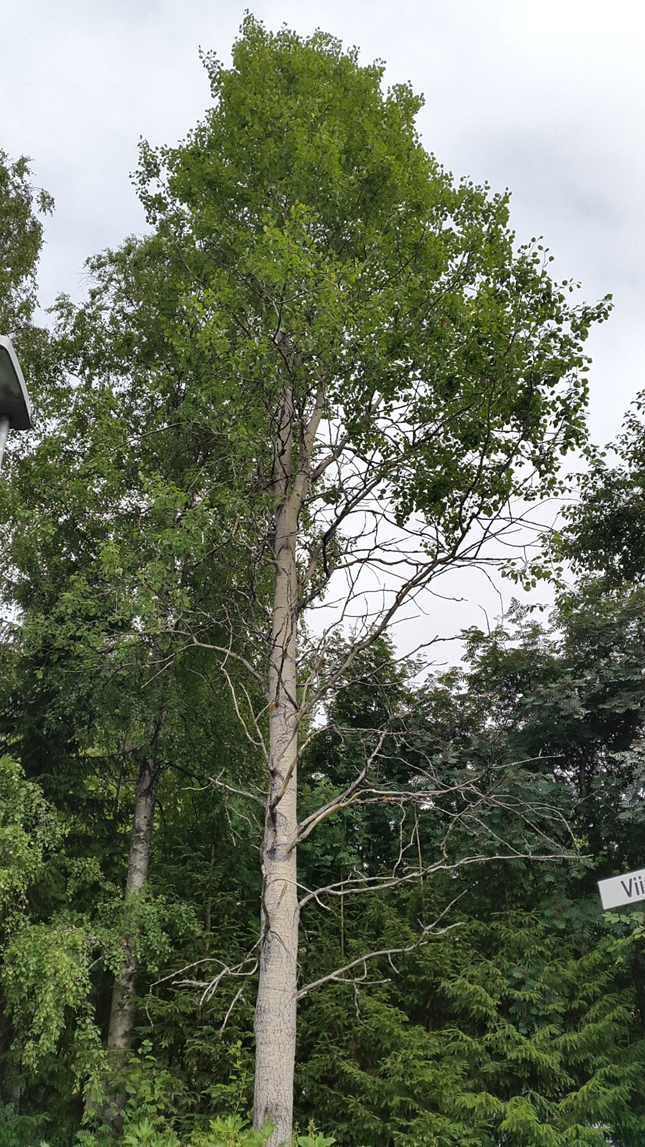 AsMaV-infected Eurasian aspen (P. tremula) showing extensive dieback of twigs and branches in the lower parts of the canopy