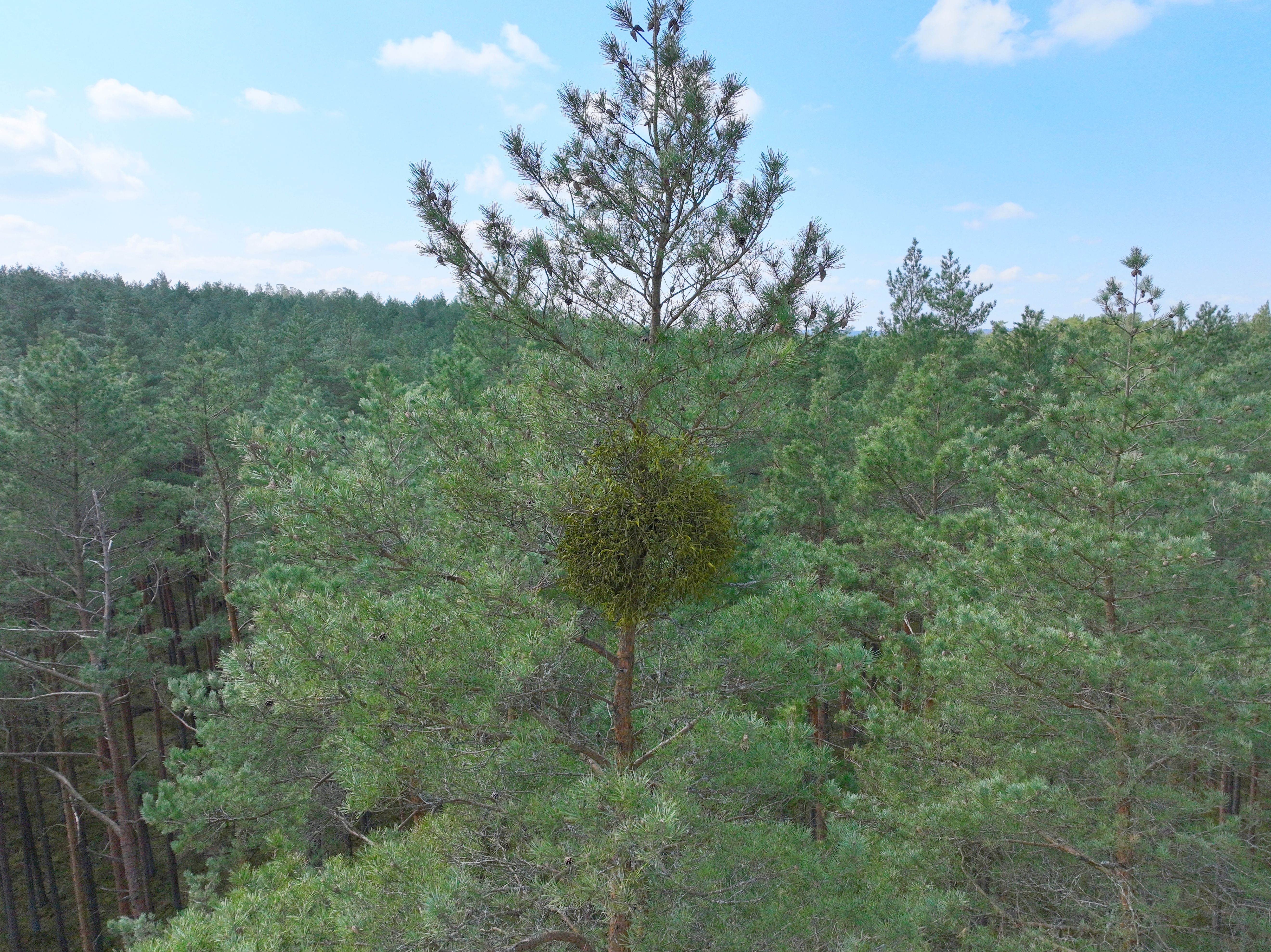 Viscum album ssp. austriacum bushes in the crown of Scots pine (Pinus sylvestris L.) in the north east Poland (made available by Sławno Forest -District)